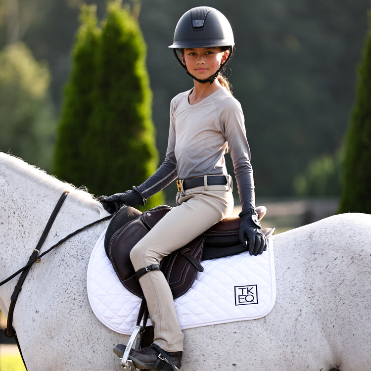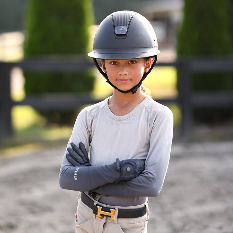 Meet our MINI Seamless Performance Shirt. We've taken everything you love about our Seamless Shirt that broke-the-internet & made it for Pony Kids. The ultra-soft fabric UPF 30+ Sun Protection & stretch make this shirt essential for equestrians. Even better: We've added ATHLETE above the cuff.