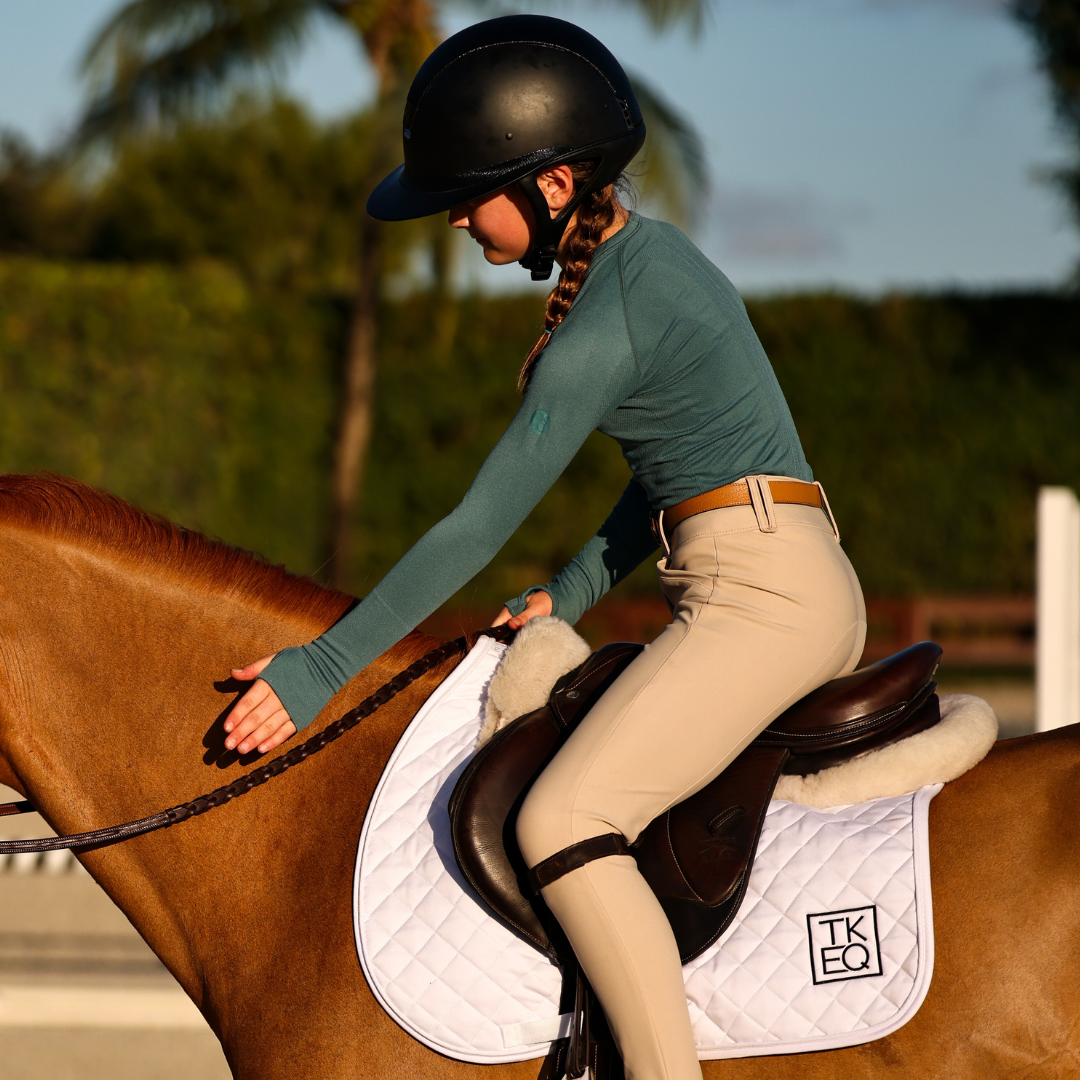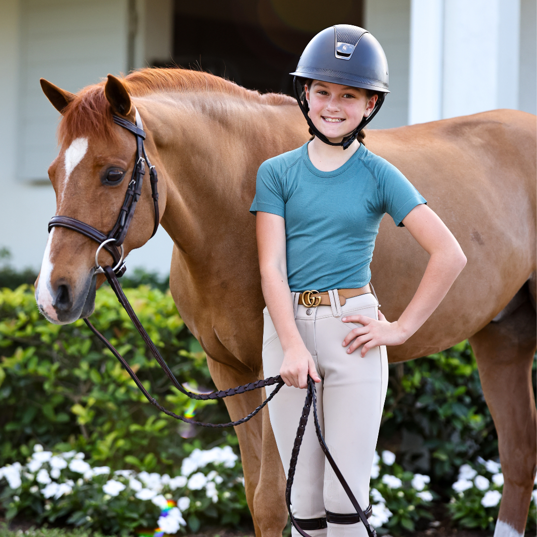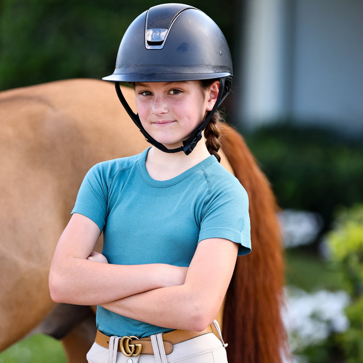 Meet our MINI Seamless Performance Shirt. We've taken everything you love about our Seamless Shirt that broke-the-internet & made it for Pony Kids. The ultra-soft fabric UPF 30+ Sun Protection & stretch make this shirt essential for equestrians. Even better: We've added ATHLETE above the cuff.